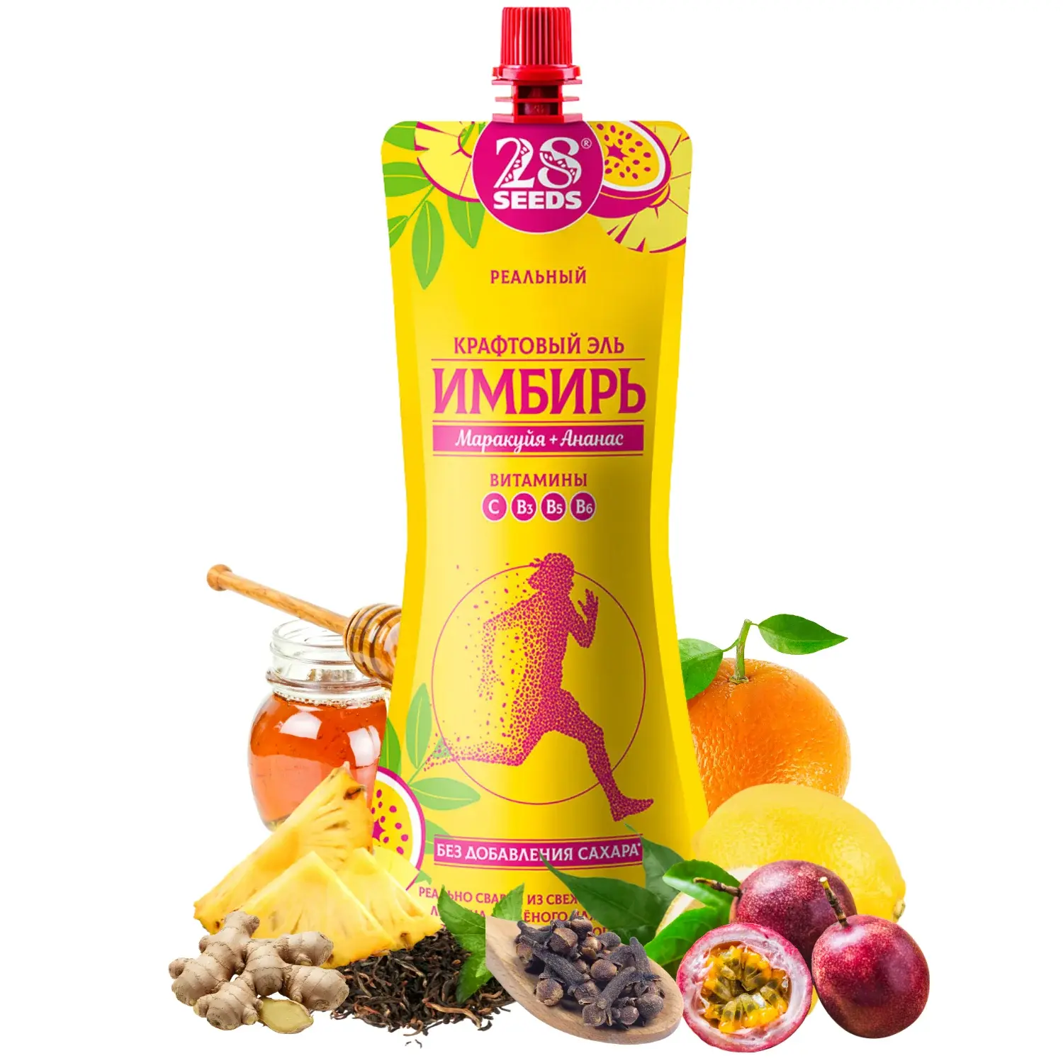 Крафтовый Эль ИМБИРЬ «Маракуя + Ананас» 250 мл. Имбирный отвар, пряный чай, маракуйя, ананас, апельсин, мёд и витамины — тропический имбирный эль с пряно-фруктовым вкусом для любителей ярких крафтовых напитков.