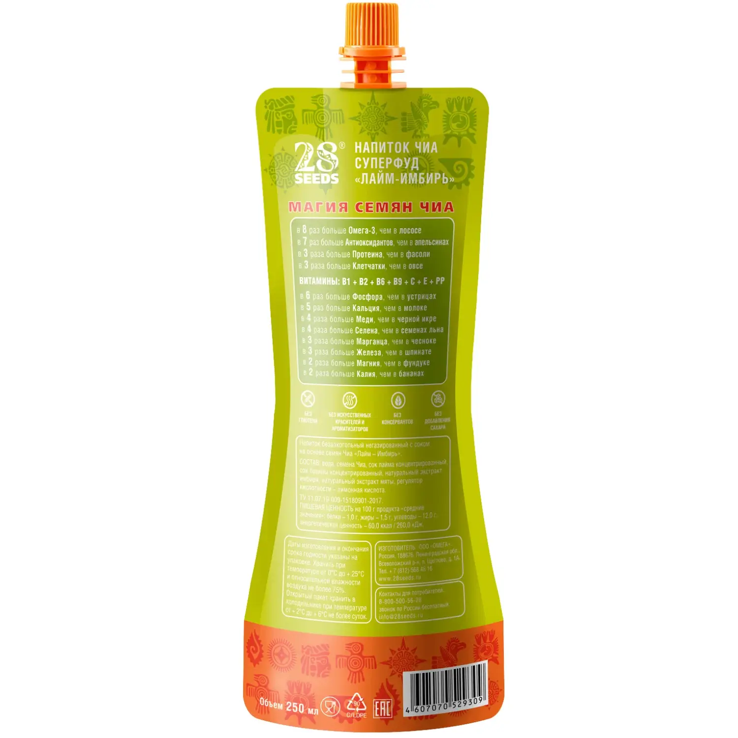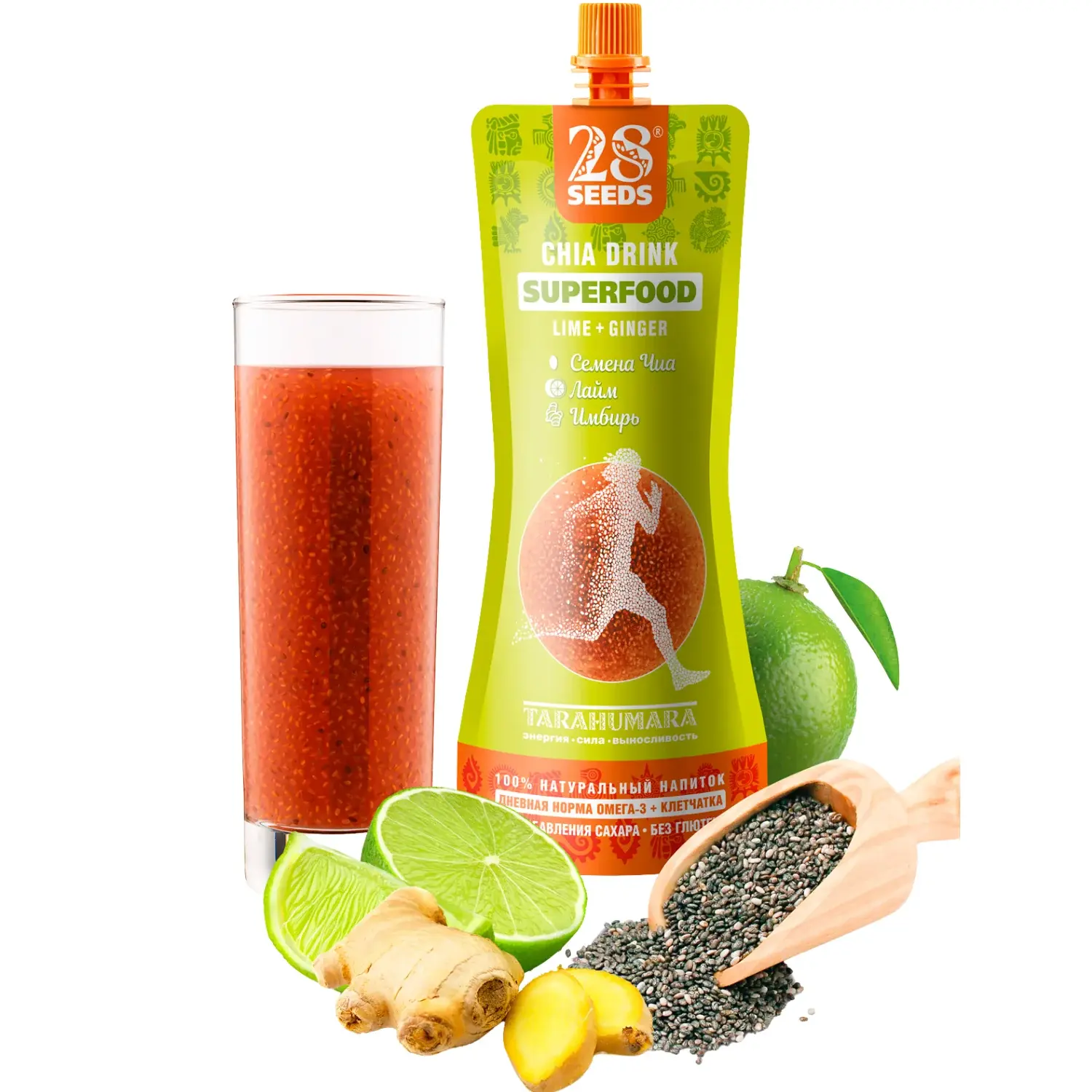 Натуральный функциональный напиток Чиа СУПЕРФУД «Лайм – Имбирь» 250 мл без сахара. Семена чиа, сок лайма, бузина, натуральные экстракты имбиря и мяты — освежающий вкус, суперфуды и поддержка активного дня.