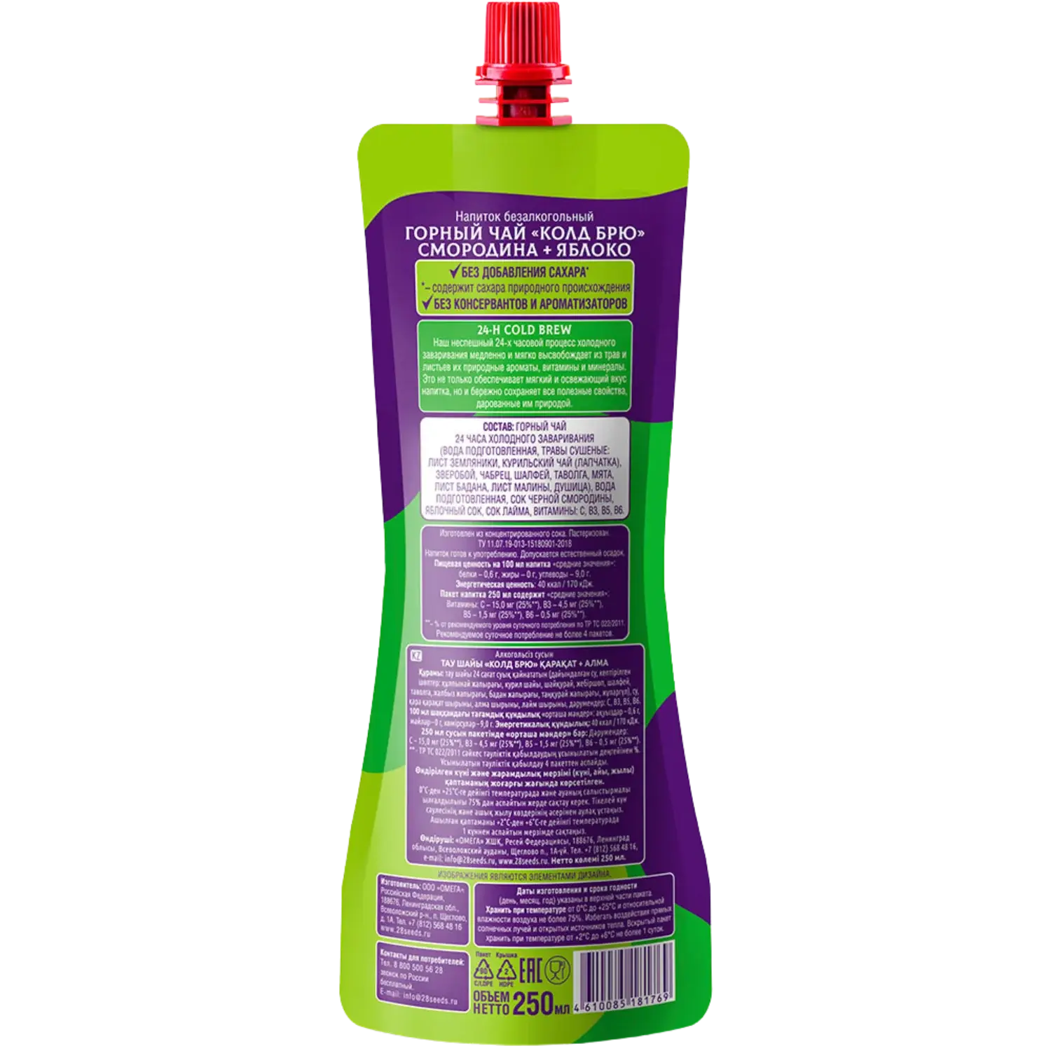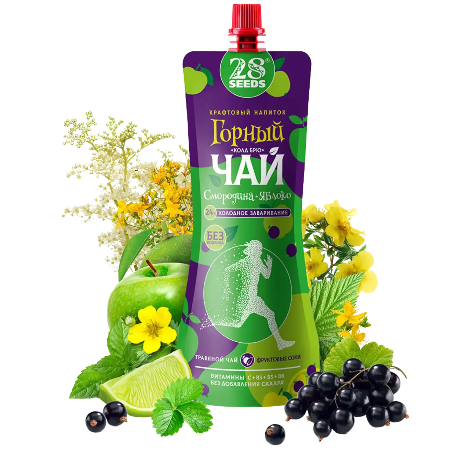 Холодный горный травяной чай, настоянный 24 часа по технологии cold brew, с соком черной смородины, яблочным соком и соком лайма. Негазированный напиток без добавленного сахара, с витаминами C, B3, B5, B6. Яркий вкус ягод и трав для ЗОЖ, обеда, офиса и походов.