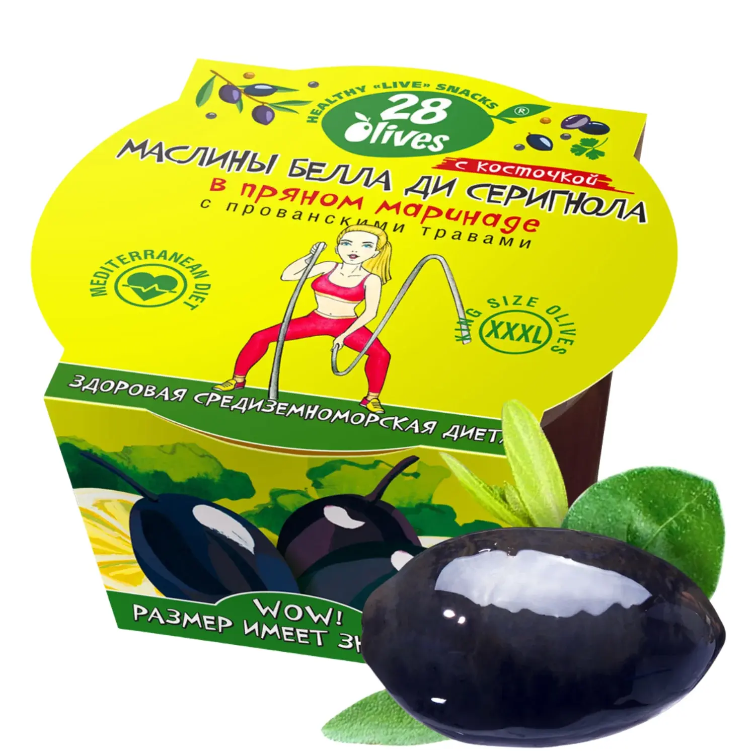 Итальянские маслины Белла ди Серигнола с косточкой в пряном маринаде с прованскими травами. Очень крупные, мясистые плоды для эффектной подачи на фуршетах, сырных и мясных тарелках. Контейнер 150 г (масса маслин 60 г).