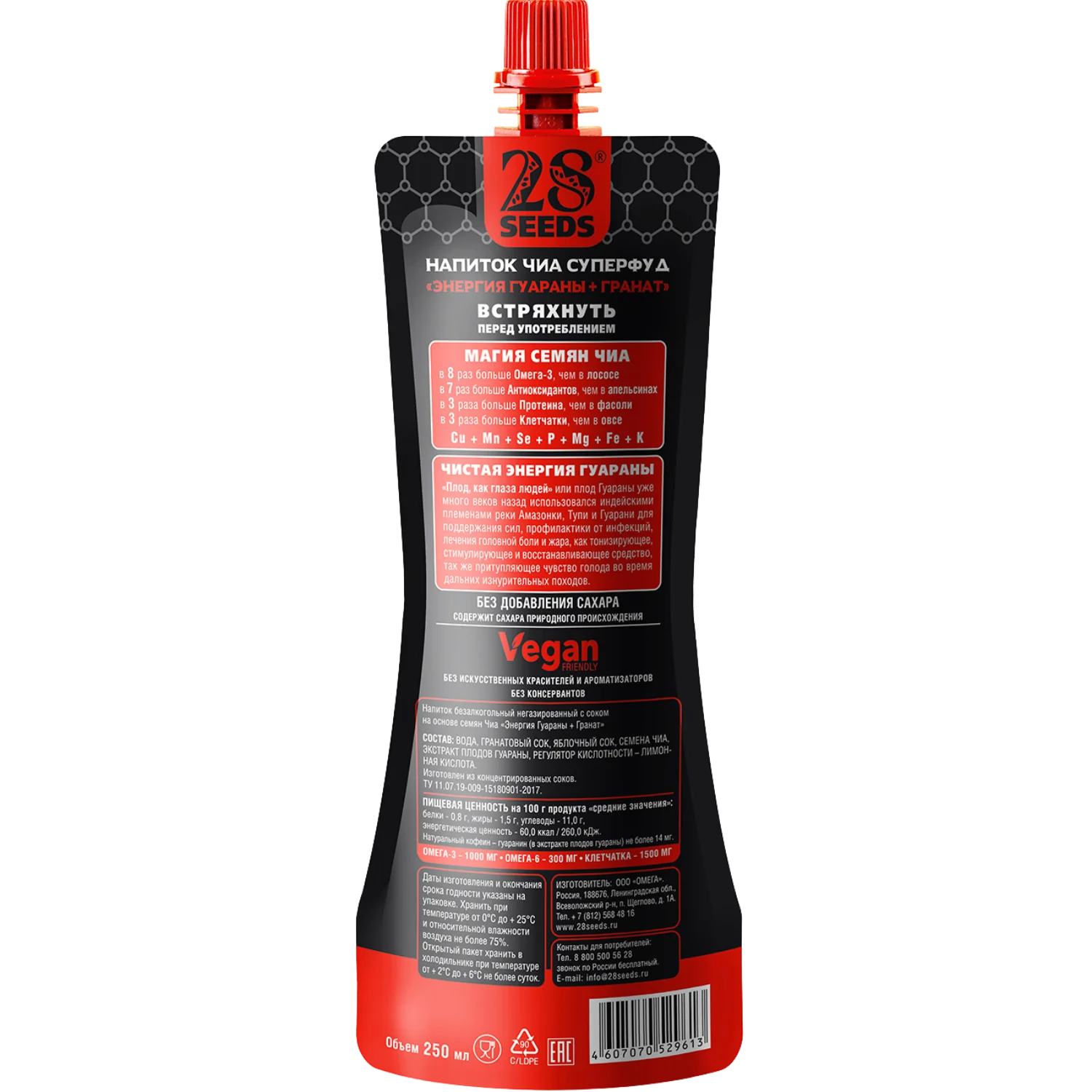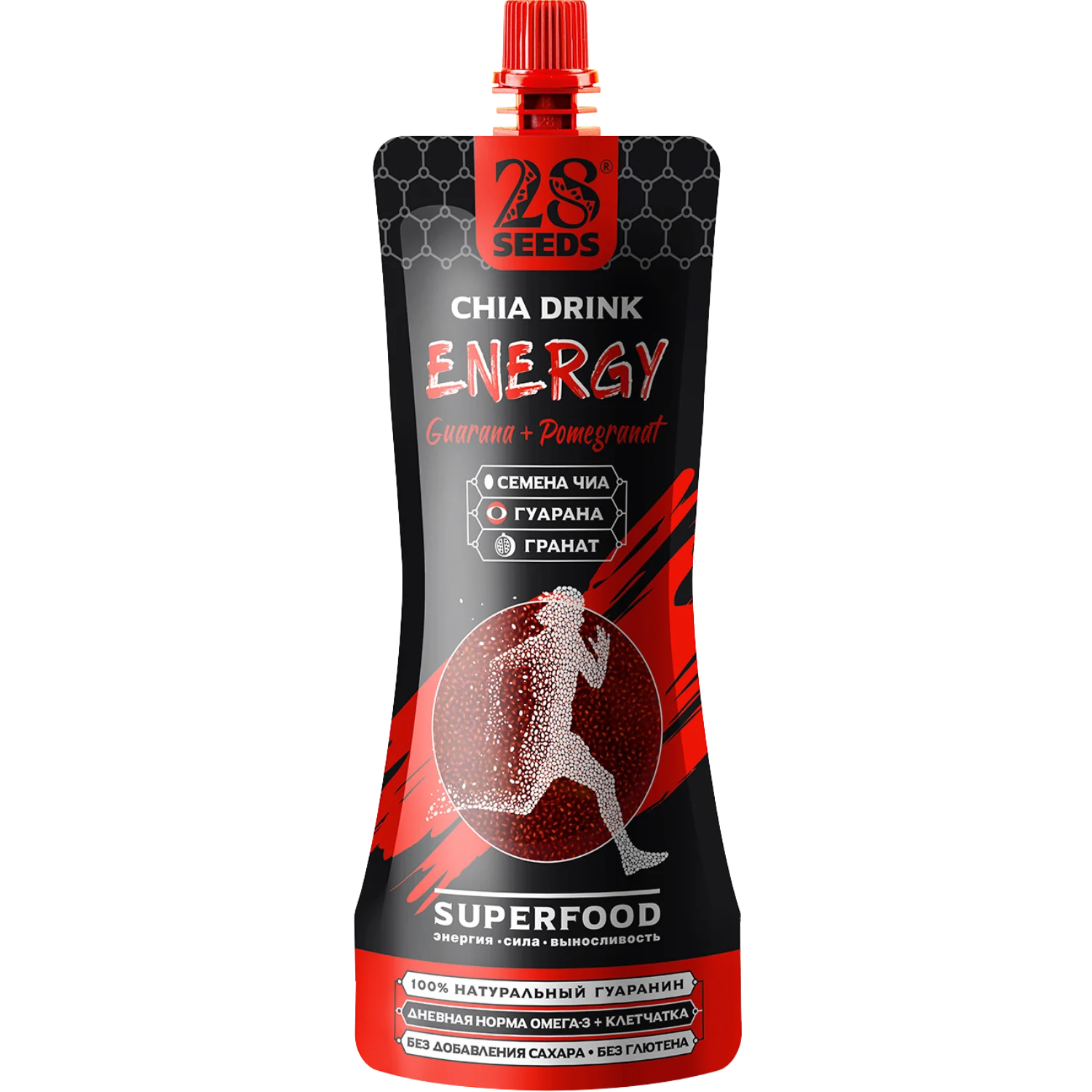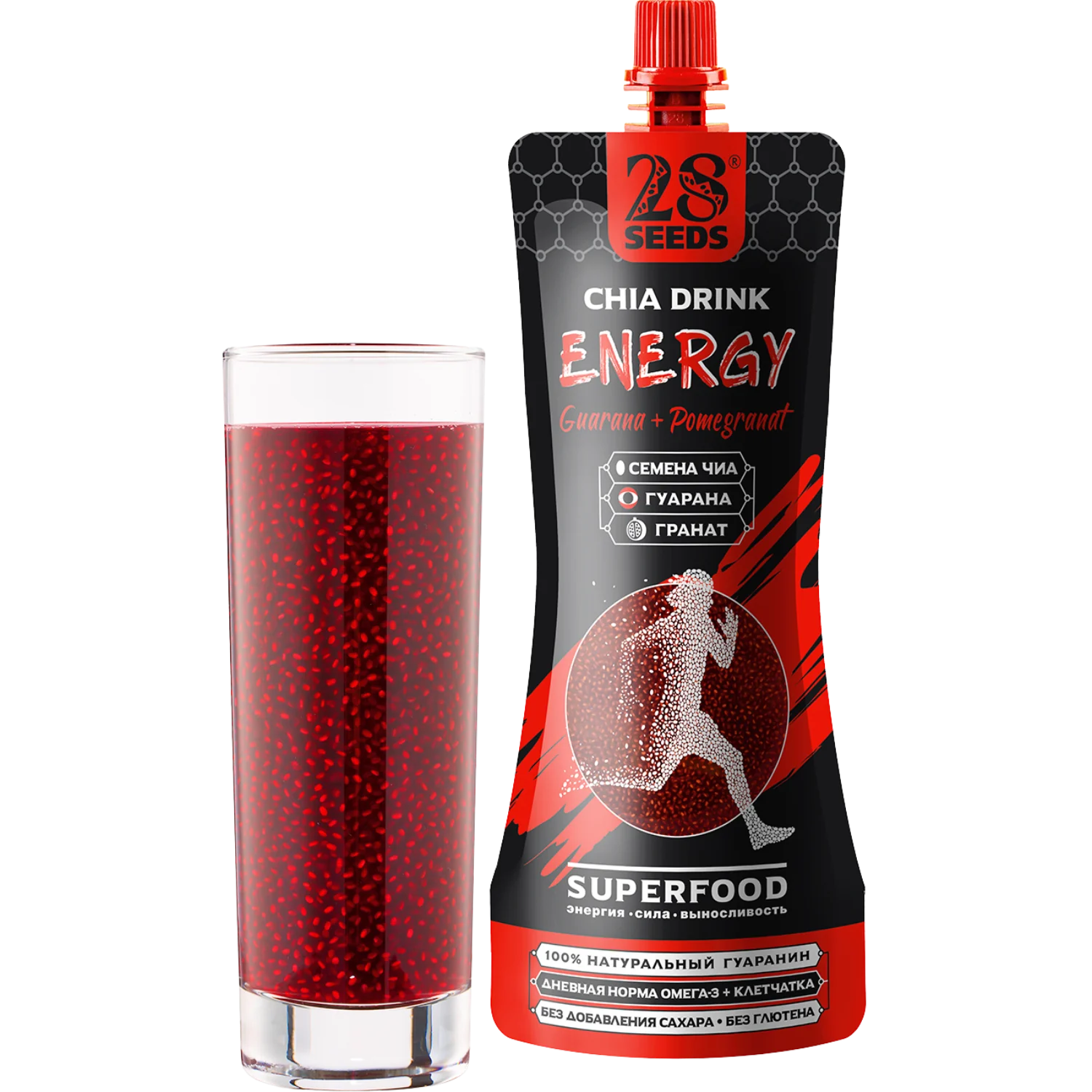 Натуральный функциональный напиток Чиа СУПЕРФУД «Энергия Гуараны + Гранат» 250 мл без сахара. Семена чиа, гранат, яблоко и экстракт гуараны — вкусный способ зарядиться энергией и поддержать тонус в течение дня.