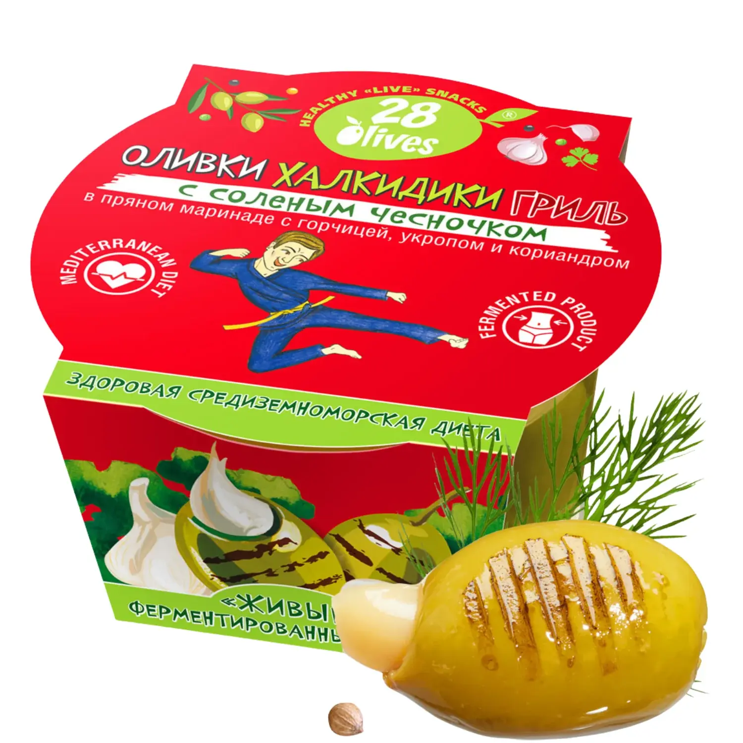 Оливки Халкидики ГРИЛЬ с соленым чесночком в пряном маринаде с горчицей, укропом и кориандром