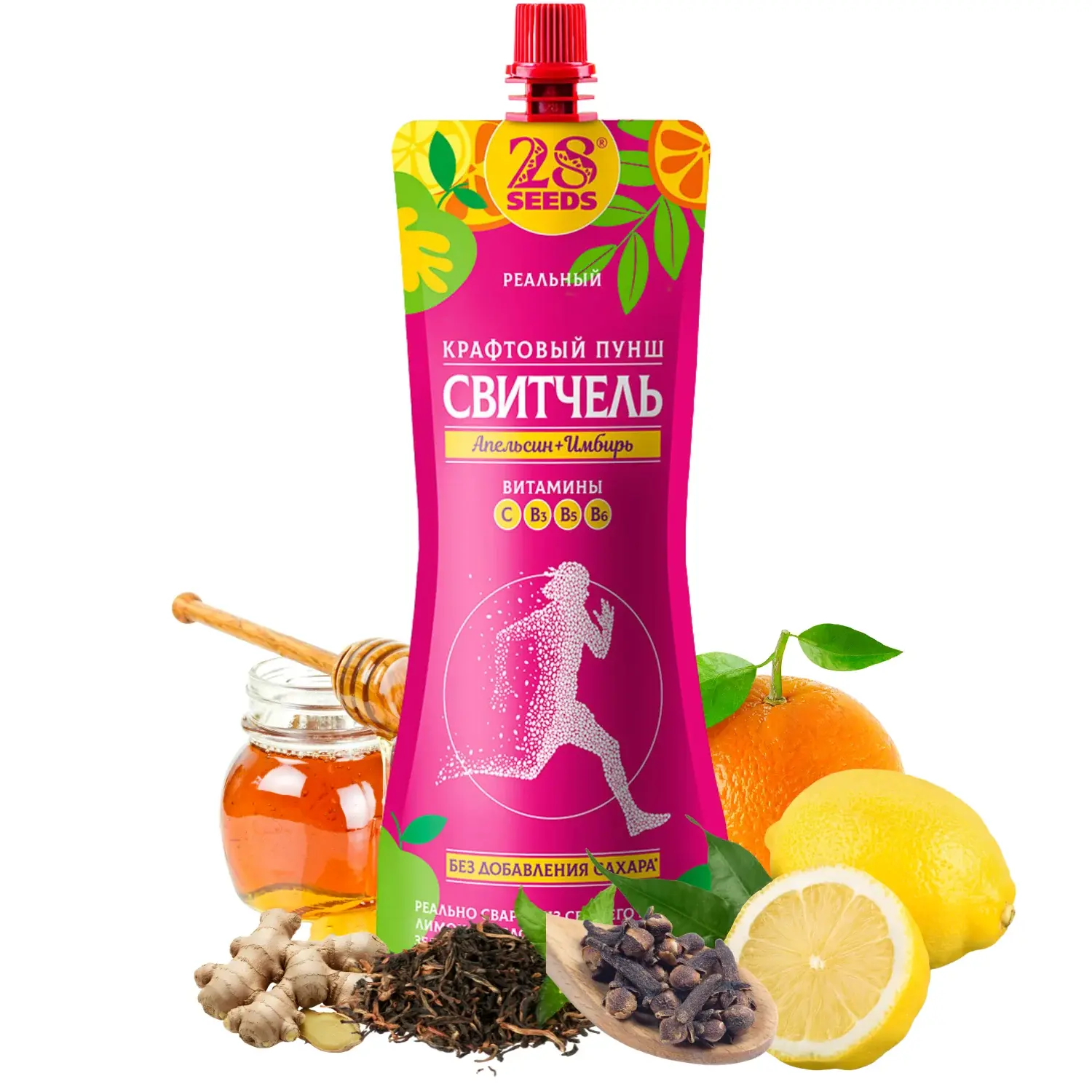 Крафтовый Пунш СВИТЧЕЛЬ «Апельсин + Имбирь» 250 мл. Имбирный отвар, апельсиновый сок, пряный чай, натуральный яблочный уксус, мёд и витамины — освежающий свитчель-пунш с пряно-цитрусовым вкусом.
