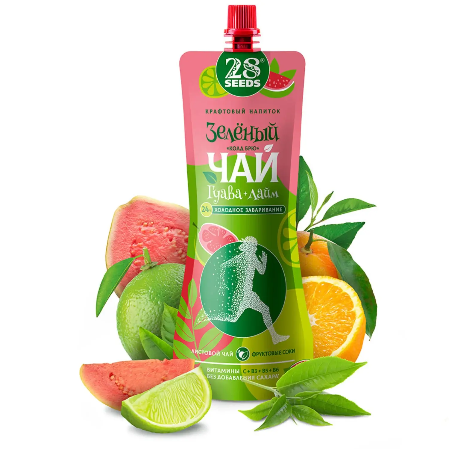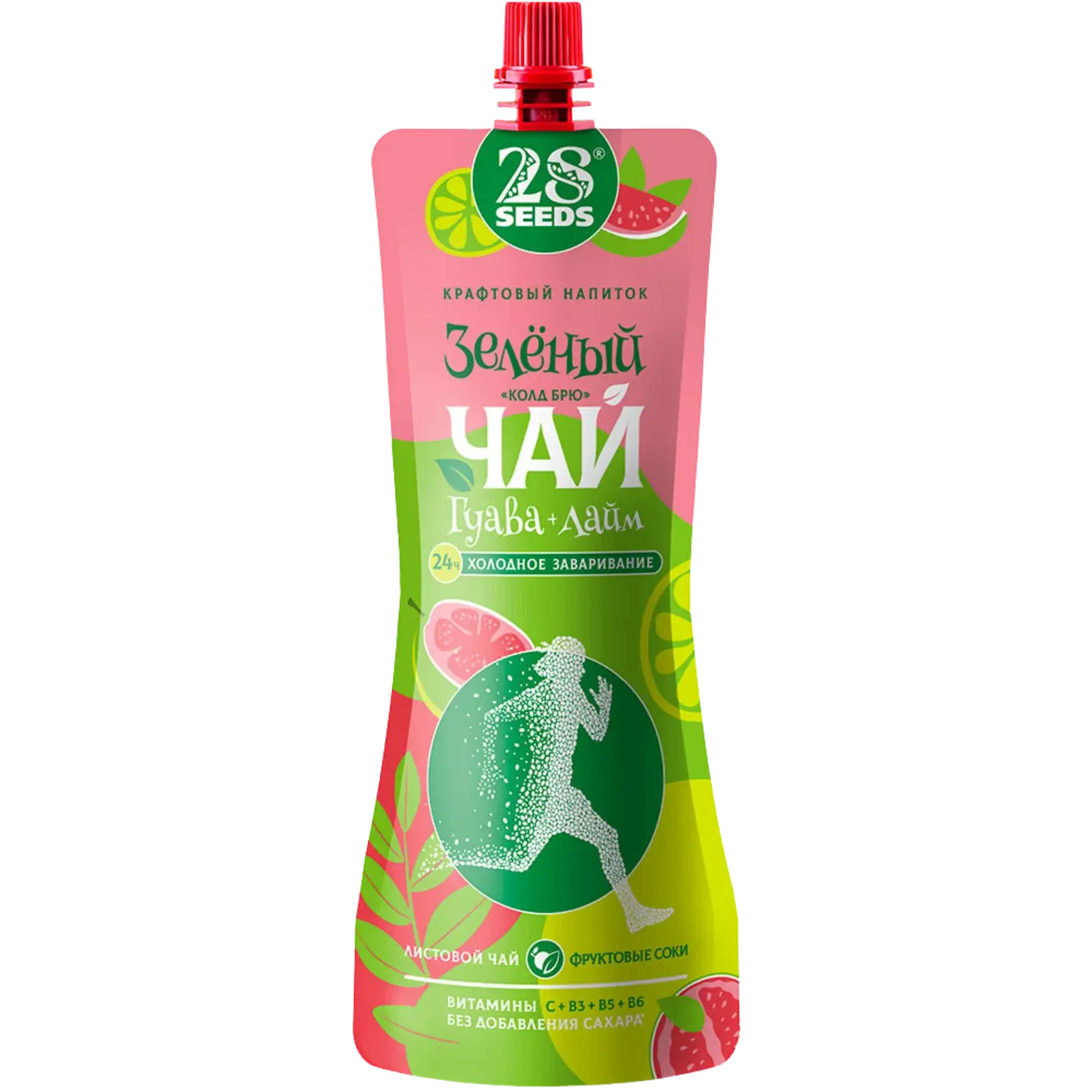 Холодный зеленый чай, настоянный 24 часа по технологии cold brew, с натуральным соком гуавы, лайма и апельсина. Негазированный низкокалорийный напиток (30 ккал на 100 мл) без добавленного сахара, с витаминами C, B3, B5, B6, в удобном мобильном дой-паке 250 мл. Идеален для ЗОЖ, обеденного стола, офиса, спорта и поездок.